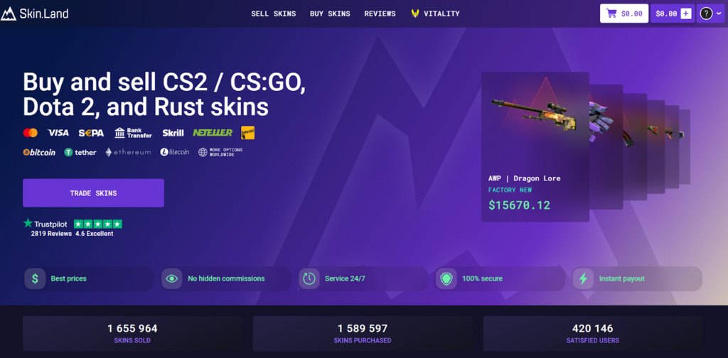 Marketplaces play a key role in translating esports hype into real trading activity. Skin.Land reflects these trends clearly through its active listings and real-time pricing.